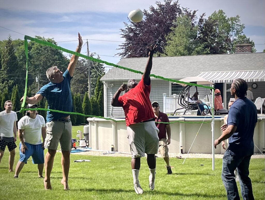 We gathered as a church family and ministry in May for some fun and fellowship. We invited the teachers at The 180 Center to join us. We have fifteen people serving as Bible teachers and discipling the men in The 180 Center Discipleship Training Program. Our backyard picnic provided time for the teachers to get to know one another. Plus, the disciples and teachers had tons of fun playing volleyball. If you are ever interested in learning more about volunteering at The 180 Center contact us at 203-909-9194.